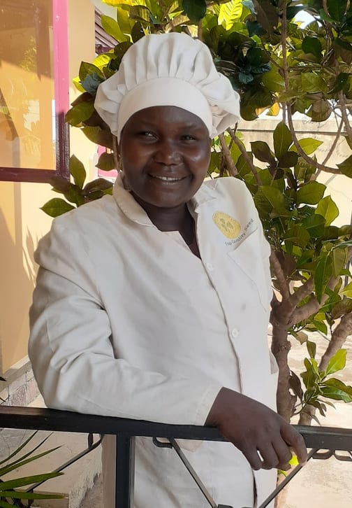Sarah is our new cook. She dresses the part with her white hat and coat. She cooks a little western food. She is catholic and is a good cook. We do bible study together and she loves the Lord.